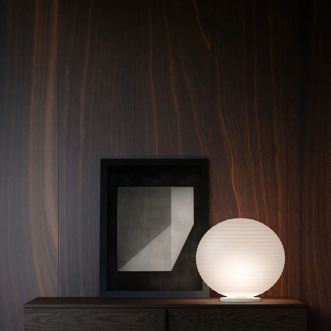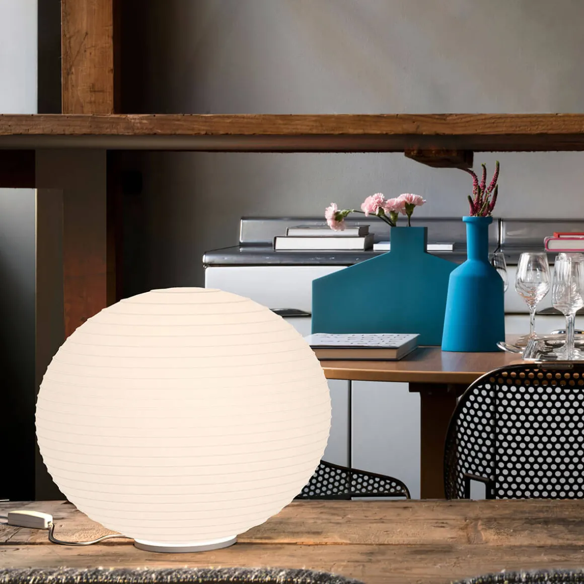 - Kugelförmige Tischleuchte, dessen Form an die orientalischen Laternen aus Papier erinnert