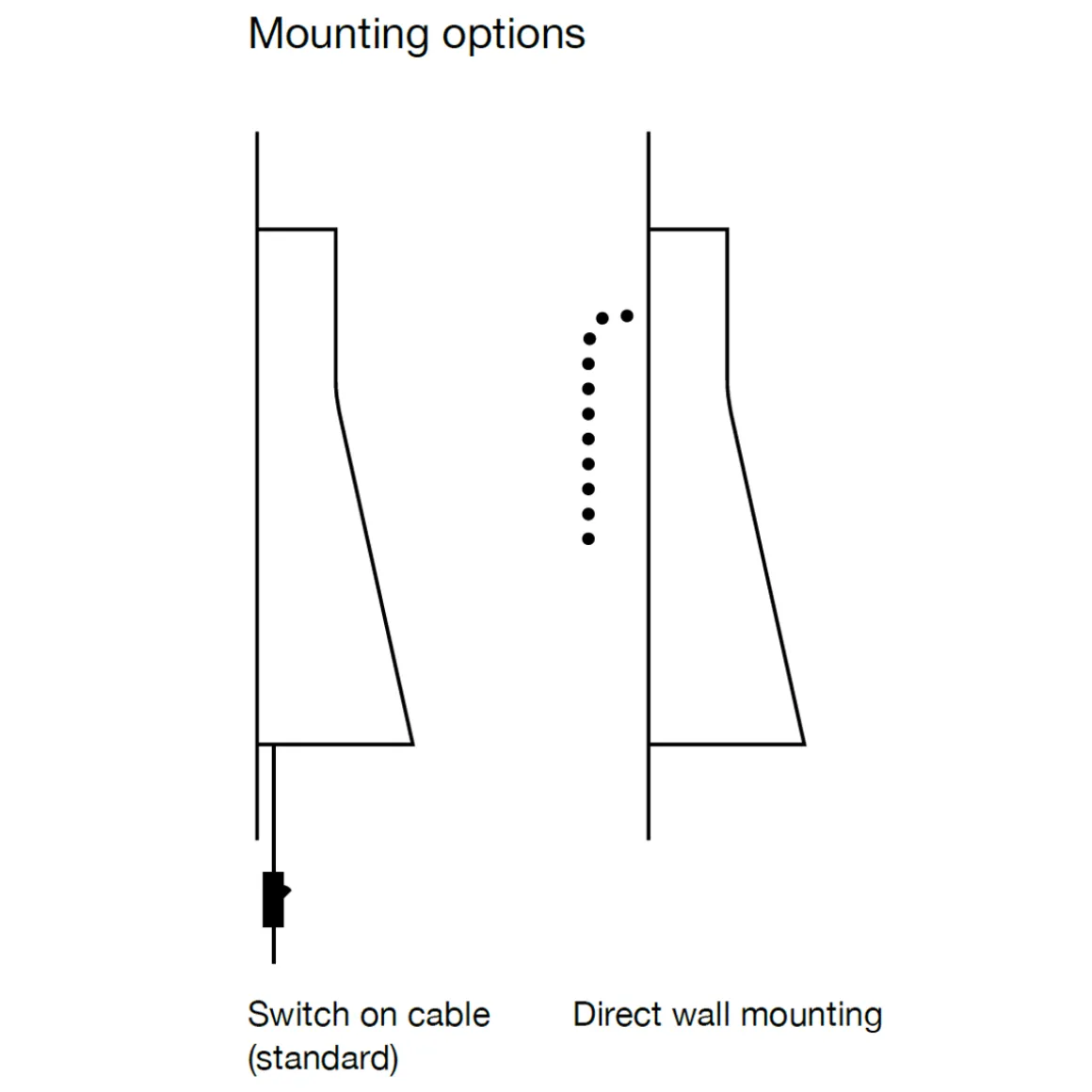 - Ausführung ohne Kabel (mit direktem Wandanschluss) auf Anfrage erhältlich