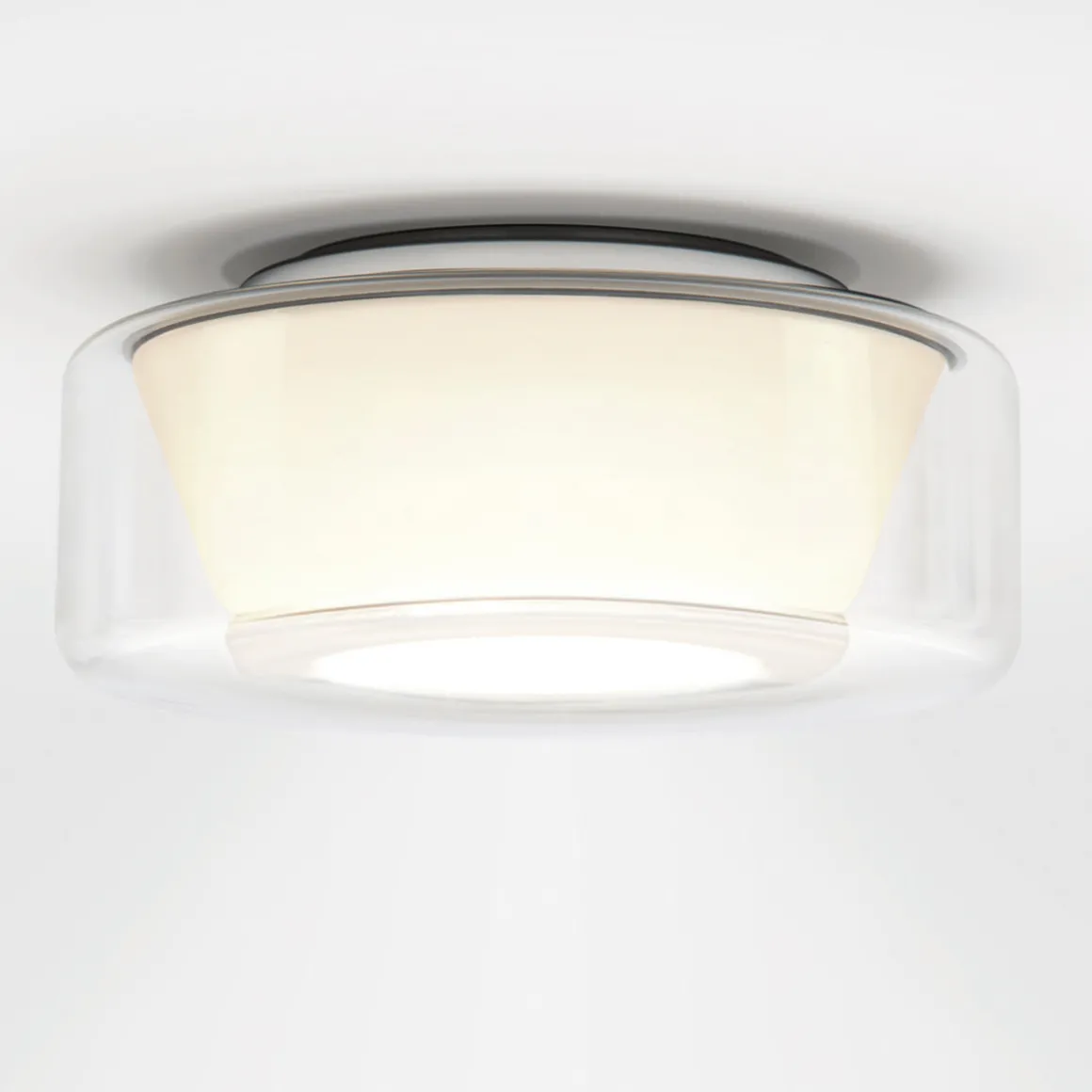 - Modern-elegante Deckenlampe mit mundgeblasenem Glasschirm