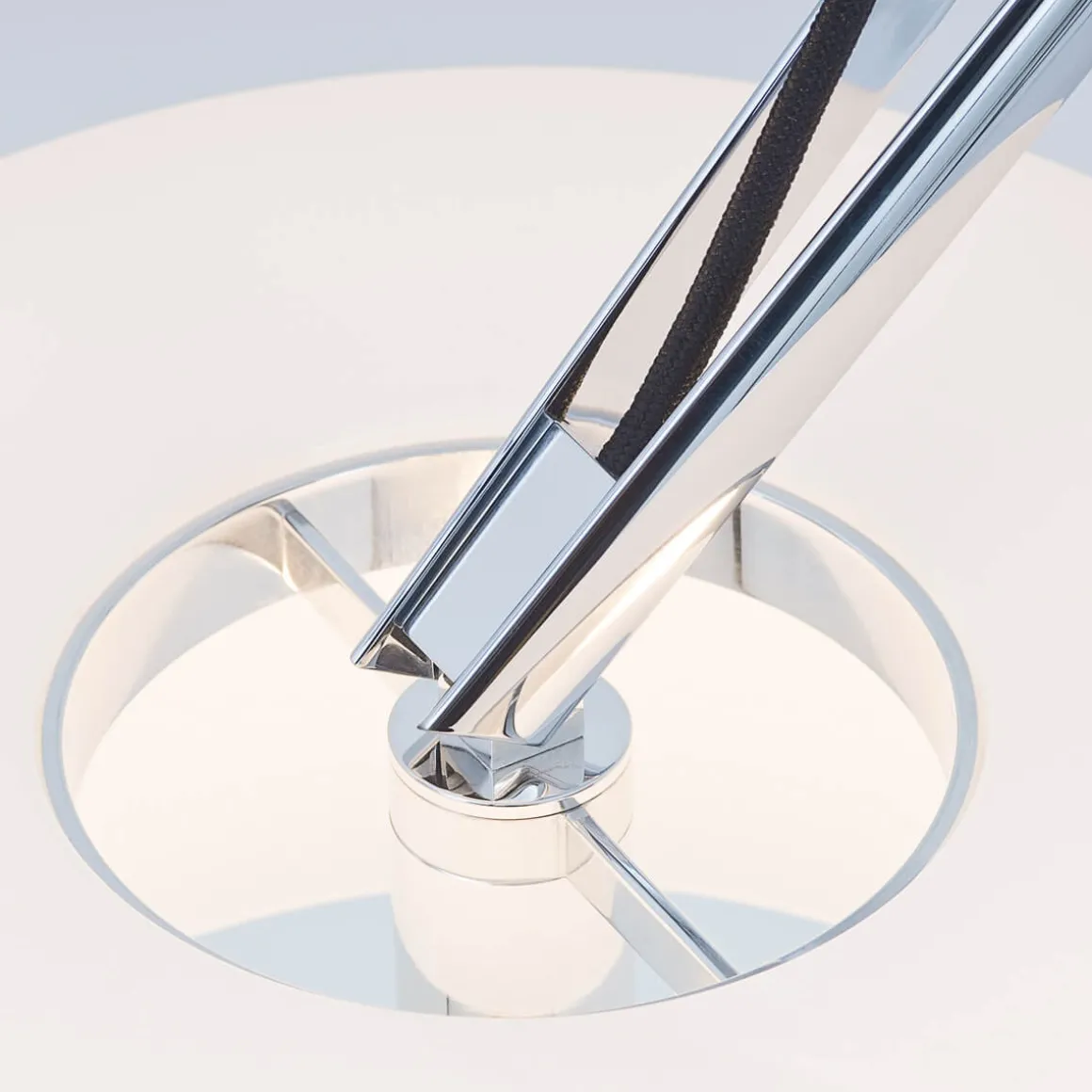Betont wird die ausgeklügelte Mechanik durch das Material der serien.lighting Twin LED Suspension. Das glanzverchromte oder schwarz seidenmatt lackierte Aluminium harmoniert perfekt mit der schlichten und grazilen Formensprache.