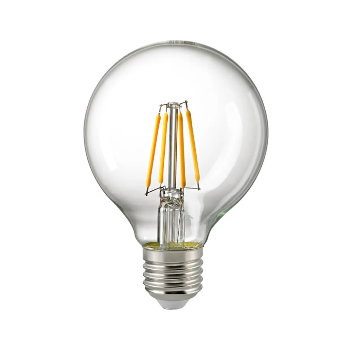 - Klare LED-Filamentlampe in Form einer klassischen Globelampe