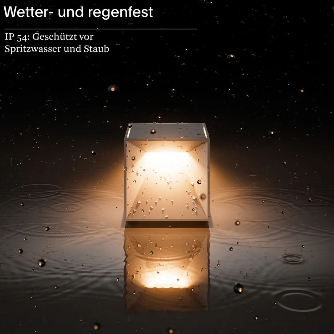- Würfelförmige Akkulampe zur mobilen Akzentbeleuchtung
