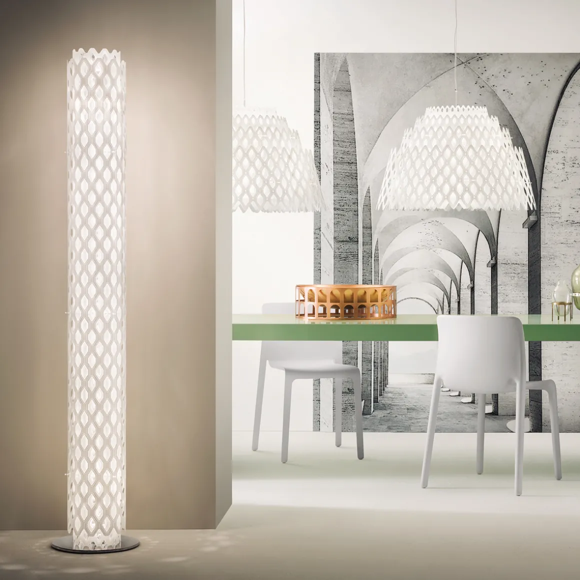 - Skulpturale Stehleuchte in Gestalt einer schlanken Lichtsäule