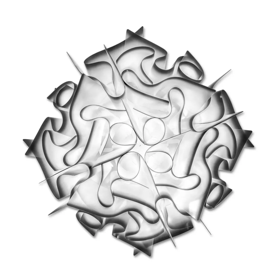 Die praktische Magnethalterung und die zahlreichen Farbausführungen machen die zu einem vielseitig einsetzbaren Lichtobjekt. Kennzeichnendes Element der Slamp Veli Ceiling / Wall Medium ist die dynamische Silhouette, die sich aus den vielfach geschwungenen Kunststoffbändern ergibt. Sie verleiht dem Leuchtenschirm eine ungewöhnliche Leichtigkeit und Eleganz, die den dekorativen Wert des Modells unterstreichen.