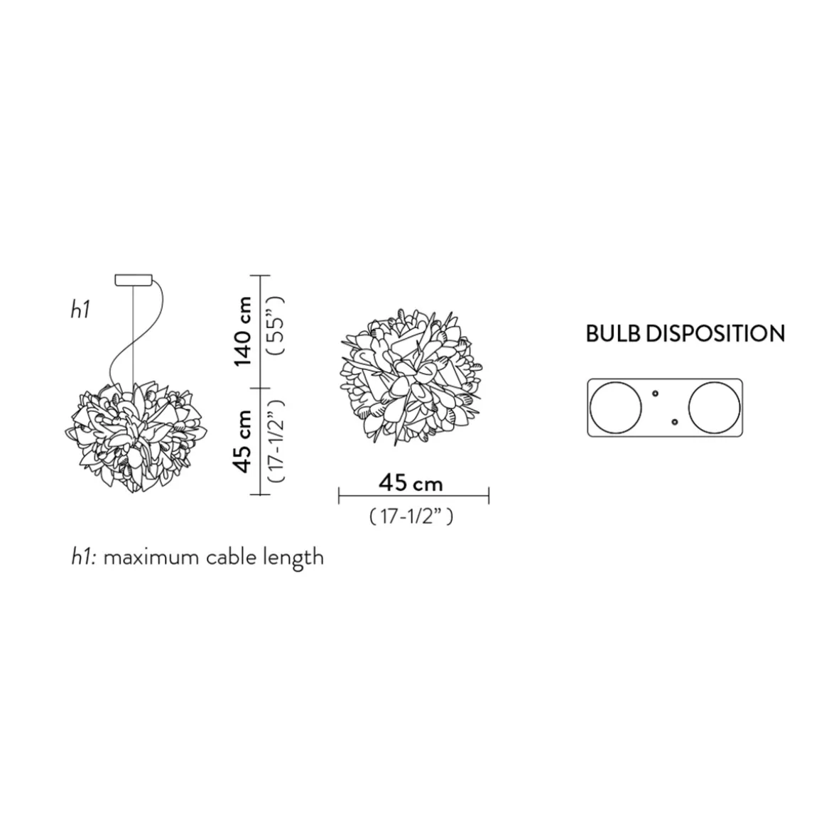- Kunstvolle Pendelleuchte aus mit Blattdekor bedruckten Kunststoffelementen