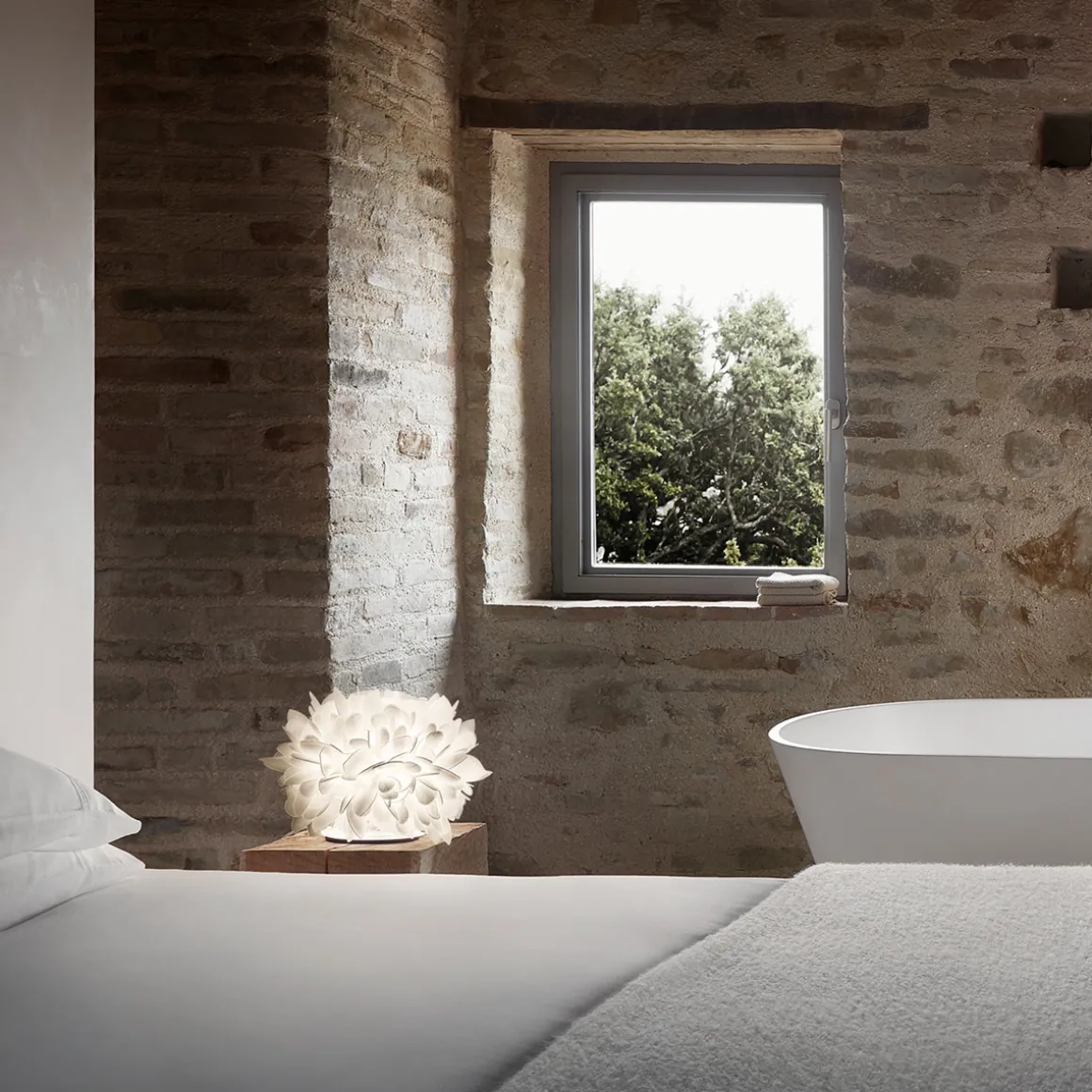 Mit ihrer einzigartigen Form sorgt die Tischlampe für eine gleichmäßige, blendfreie Lichtausstrahlung. Ihr weiches, diffuses Licht schafft eine stimmungsvolle Atmosphäre, die sich perfekt für Sideboards, Kommoden oder Nachttische eignet. Ob im Wohnbereich oder als sanfte Lichtquelle im Schlafzimmer – die Veli Foliage Table setzt stilvolle Akzente.