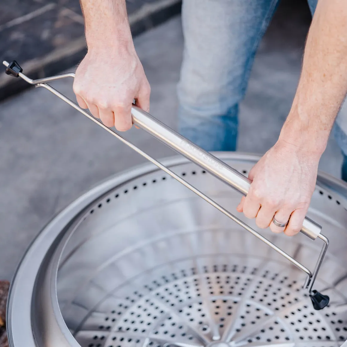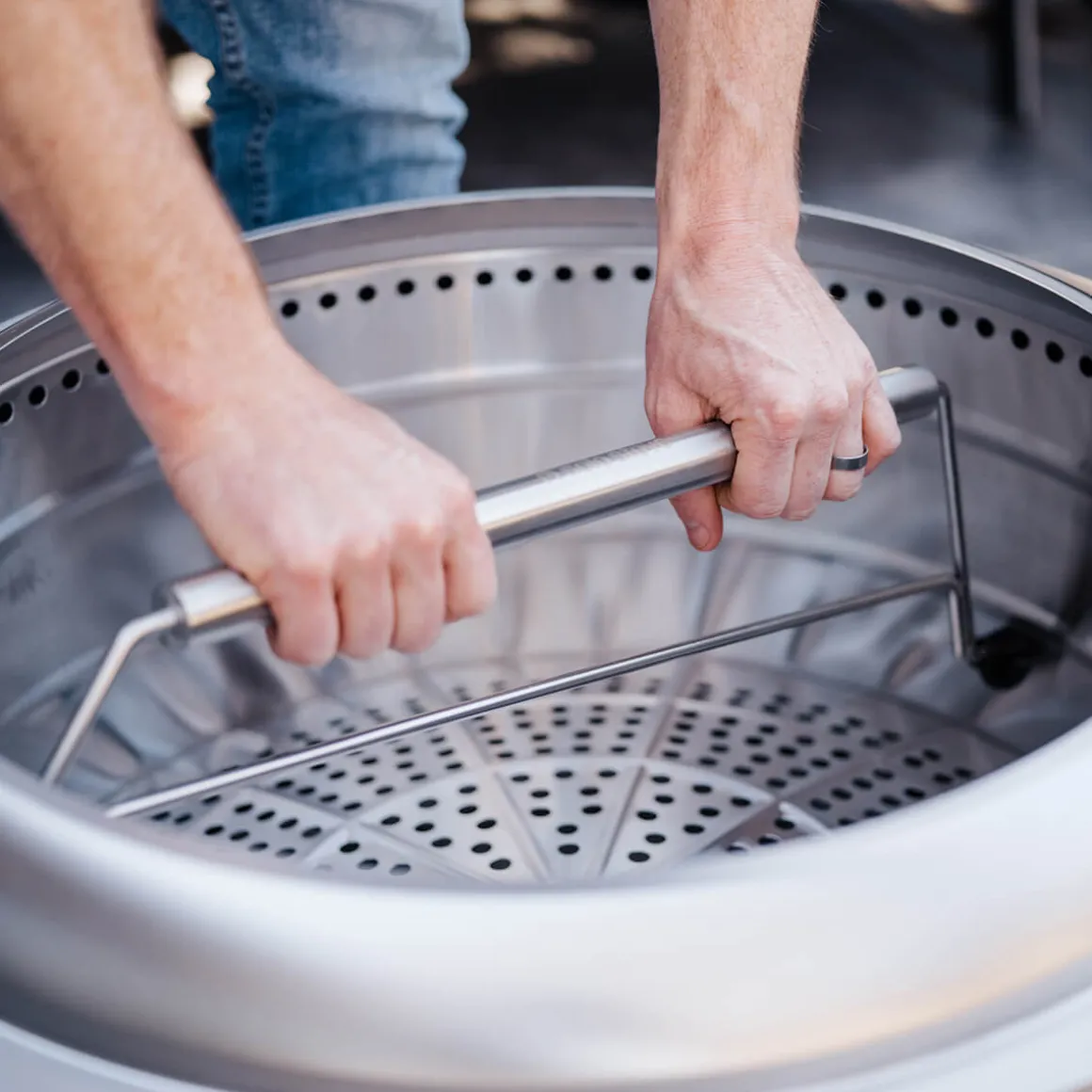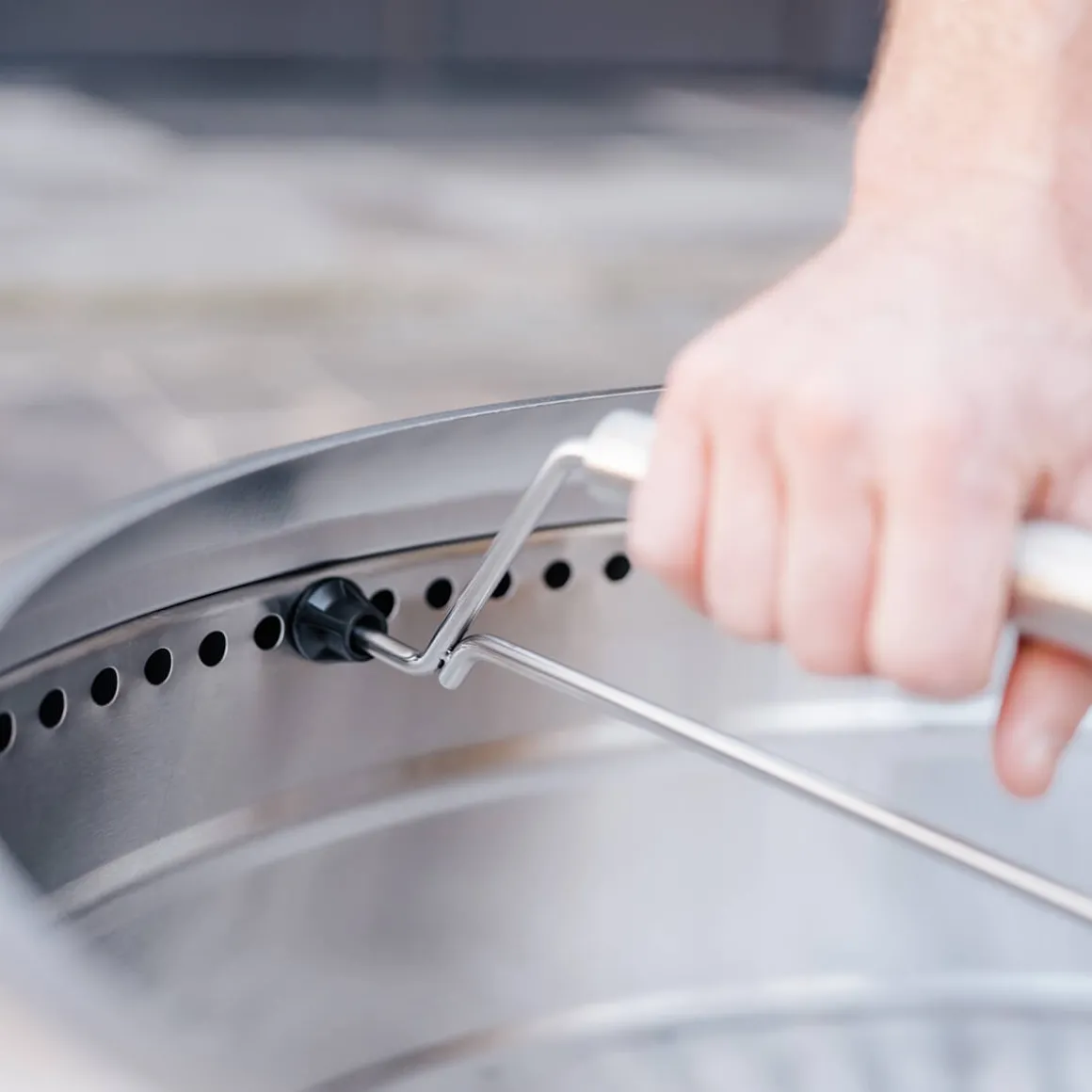 Ergonomisch geformt, ermöglicht der Tragegriff das einfache und sichere Anheben Ihrer Feuerschale. Dank des innovativen Einrastmechanismus kann der Griff mit nur einer Hand bedient werden und rastet sicher in die Feuerstelle ein. So können Sie Ihren Yukon problemlos von einem Ort zum anderen tragen, ohne sich die Hände schmutzig zu machen oder die Feuerstelle zu beschädigen.