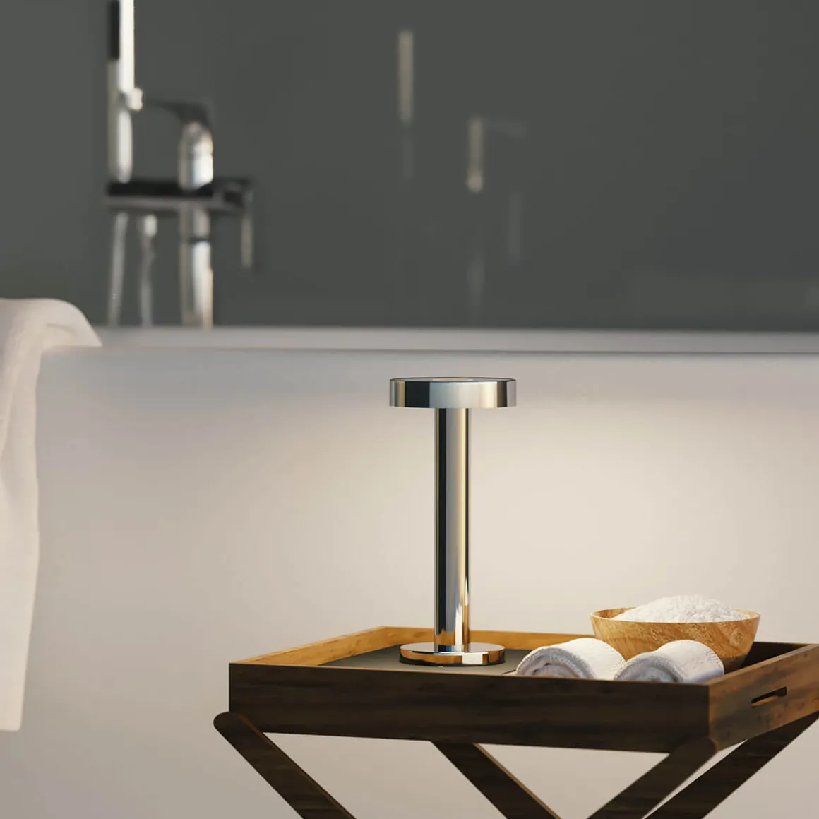 - Kabellose Akku-Tischlampe mit glamourösen Farboberflächen