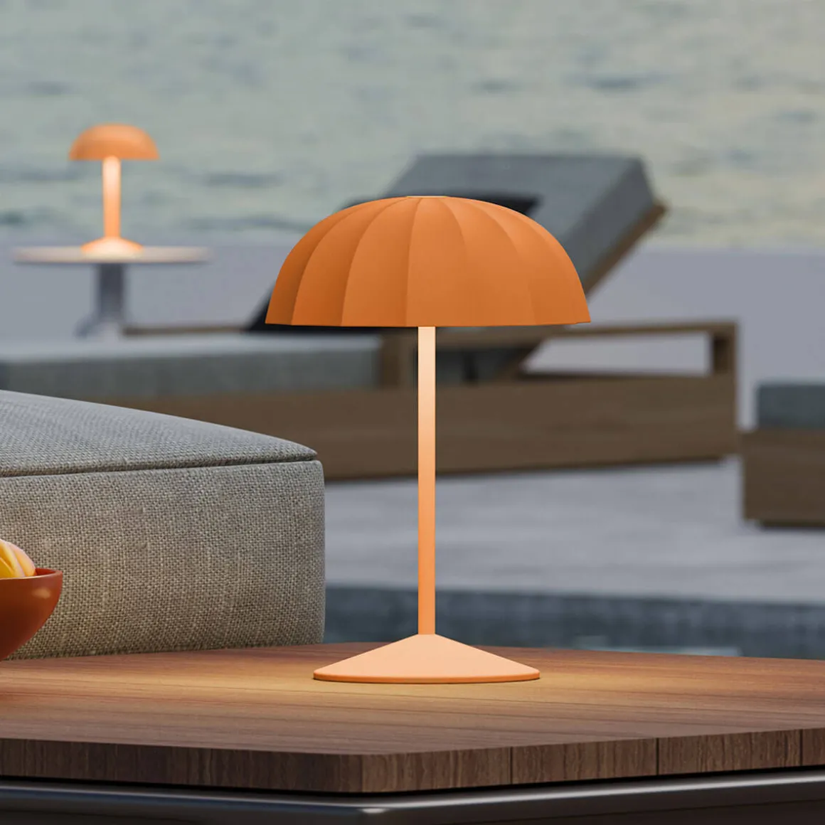 Mit ihrer sympathischen Form und den knalligen Farben fügt sich die Ombrellino einer jeden Einrichtung als Blickpunkt ein. Die ist mit einem leistungsstarken Akku ausgestattet, der eine Laufzeit von bis zu 78 Stunden gewährleistet. So können Sie sie einfach an die gewünschte Stelle stellen, ohne sich Gedanken über Kabel oder Steckdosen machen zu müssen.