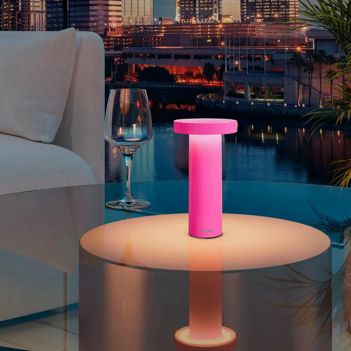 - Kabellose Akku-Tischlampe in farbenfrohen Oberflächen