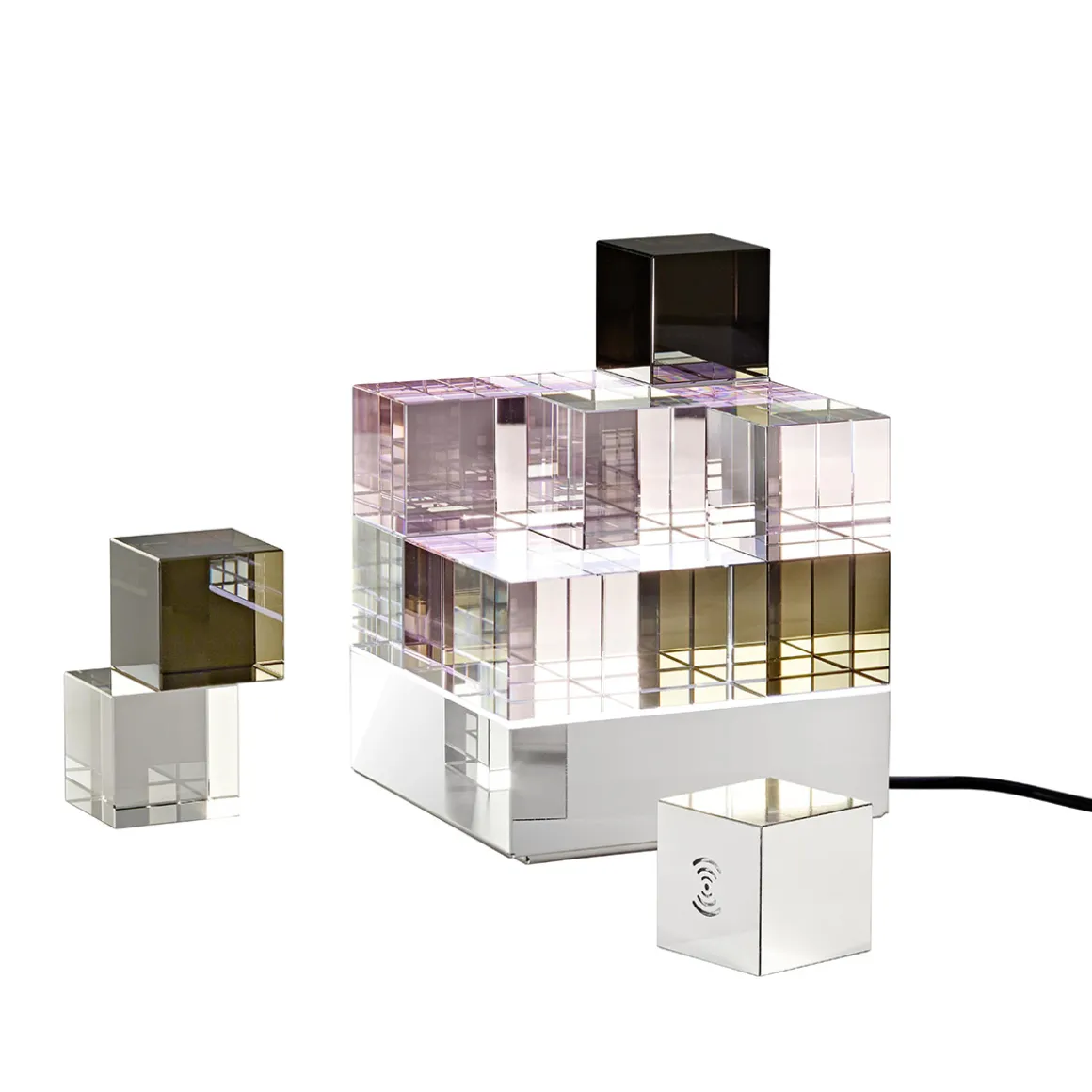 - Dekorative Tischlampe mit handgeschliffenen Glaswürfeln