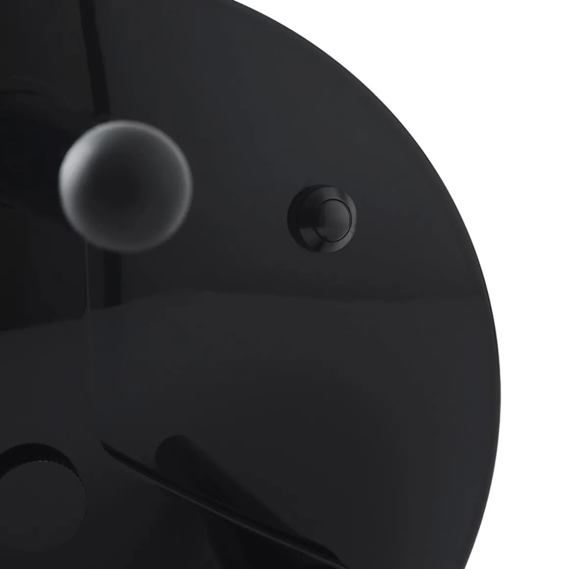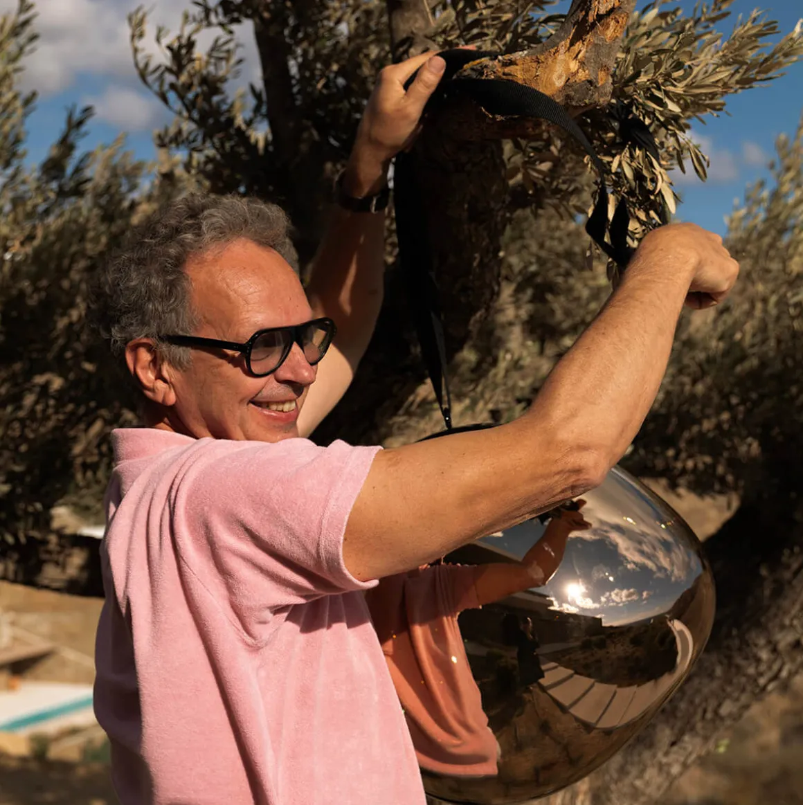 Herzstück der ist der charakteristische Melt-Schirm – eine organische, fast außerirdisch anmutende Kugelform, die an geschmolzenes Glas, Eisformationen oder galaktische Nebel erinnert. Die Oberfläche ist im ausgeschalteten Zustand hochreflektierend und verwandelt sich beim Einschalten in eine warme, transparente Lichtquelle mit faszinierendem Innenleben. Möglich wird dieser Effekt durch ein innovatives Fertigungsverfahren aus Blasformen und Vakuummetallisierung, das in Zusammenarbeit mit dem schwedischen Designstudio FRONT entwickelt wurde.