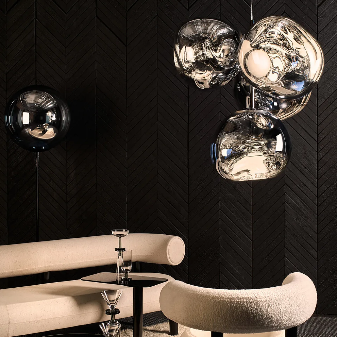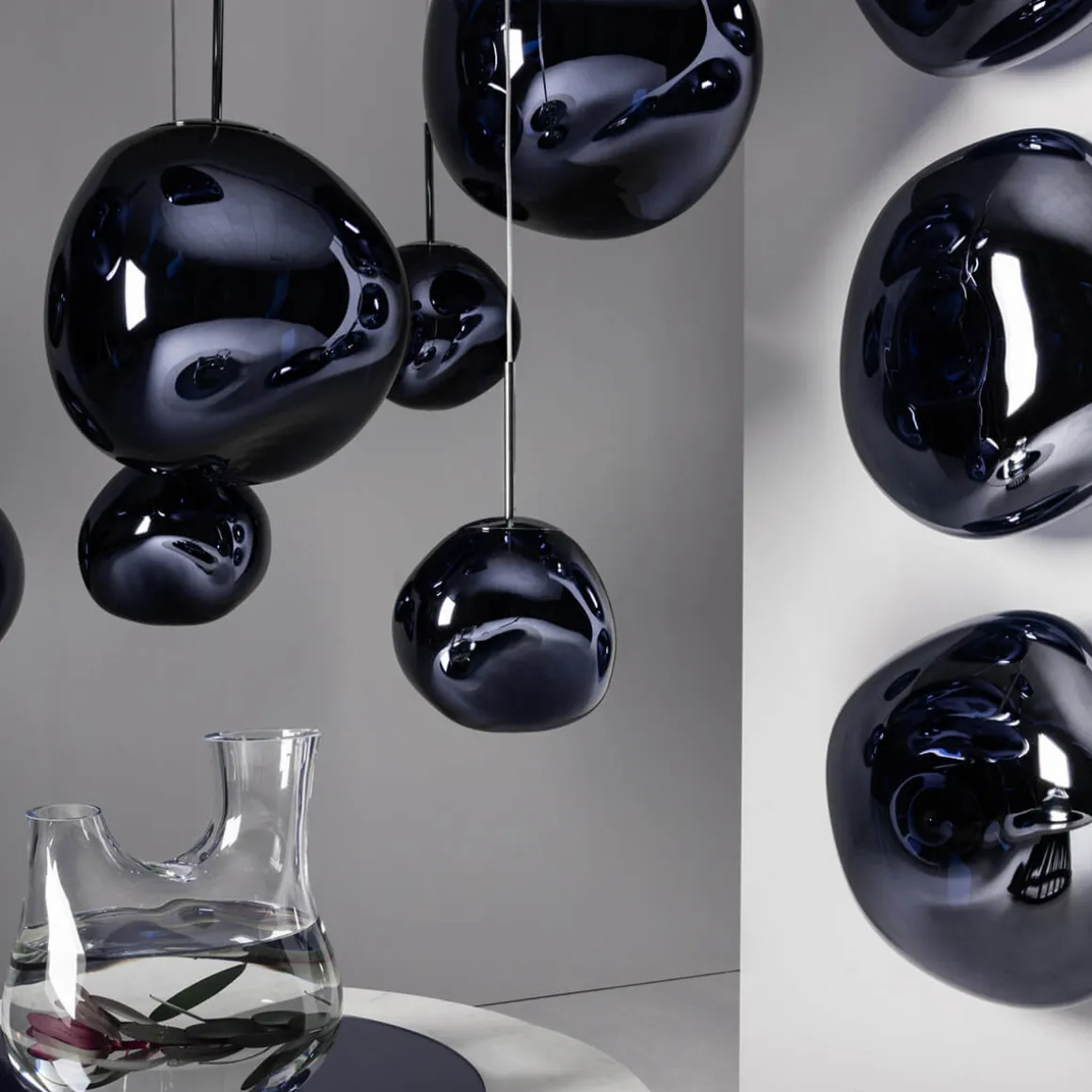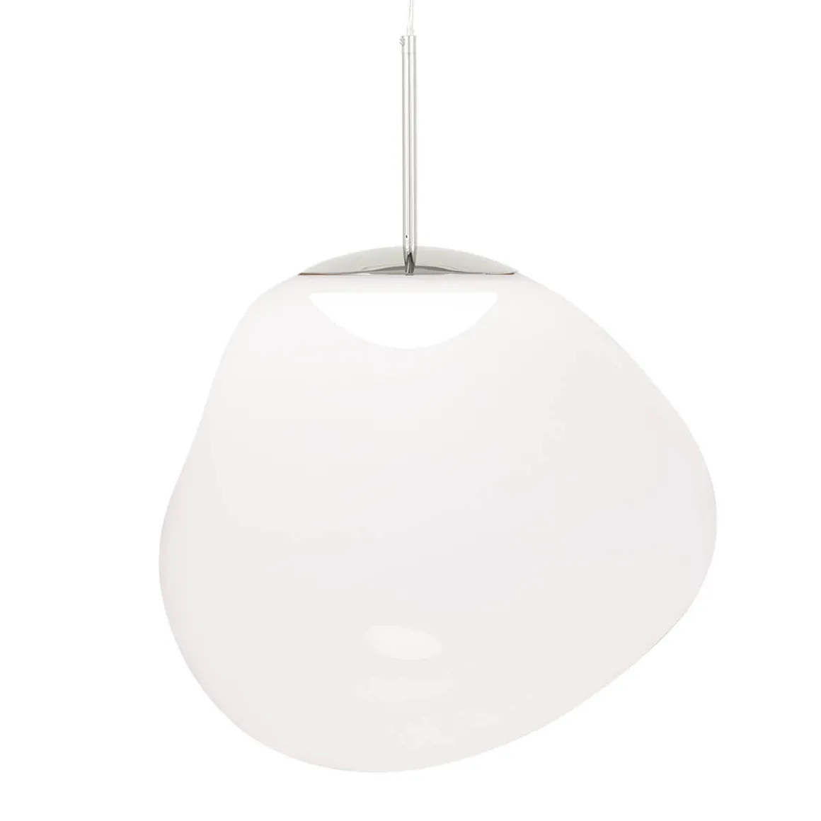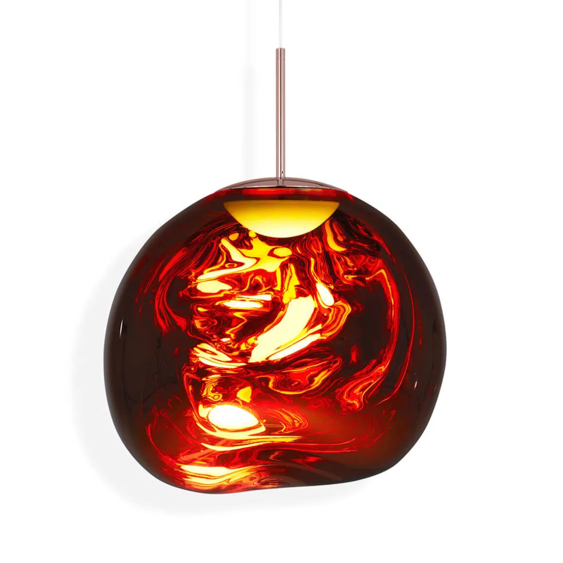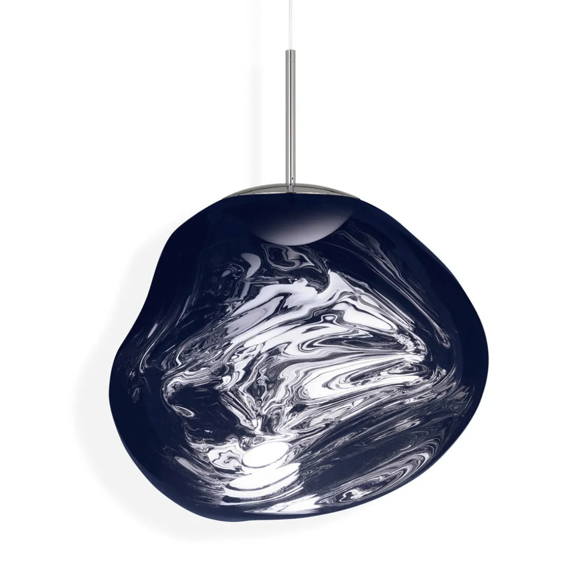 Die Melt Pendelleuchte von Tom Dixon ist ein außergewöhnliches Designobjekt, das Räume in ein faszinierendes Licht taucht und wie eine schwebende Skulptur wirkt. Ihre verzerrte, organische Form erinnert an geschmolzenes Glas oder fließende Gletscher und sorgt für ein atemberaubendes Spiel aus Licht und Reflexion. Im eingeschalteten Zustand leuchtet die Melt von innen heraus, während sie ausgeschaltet mit ihrer spiegelartigen Oberfläche beeindruckt.