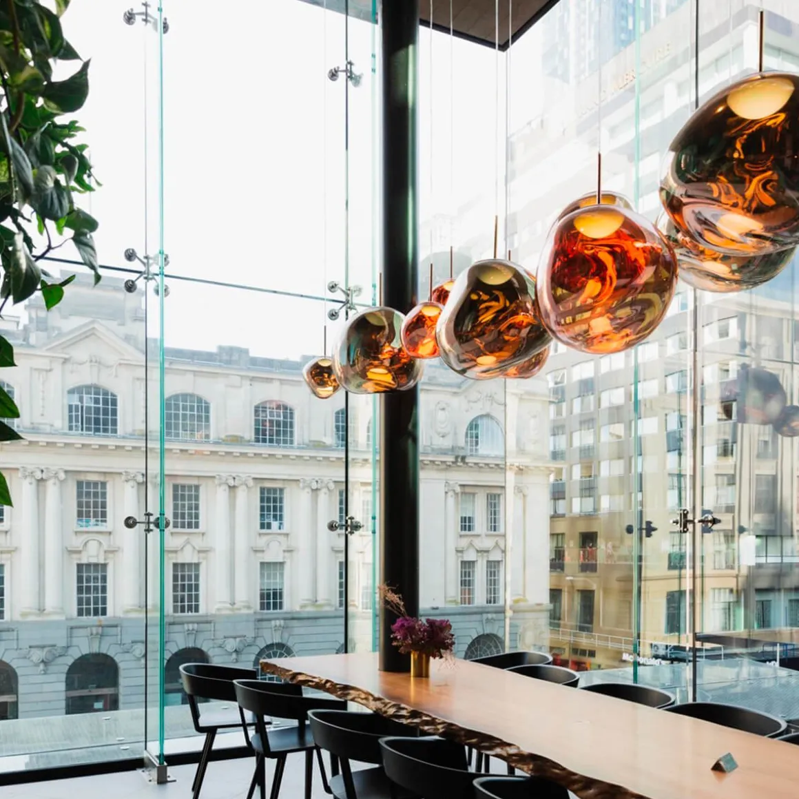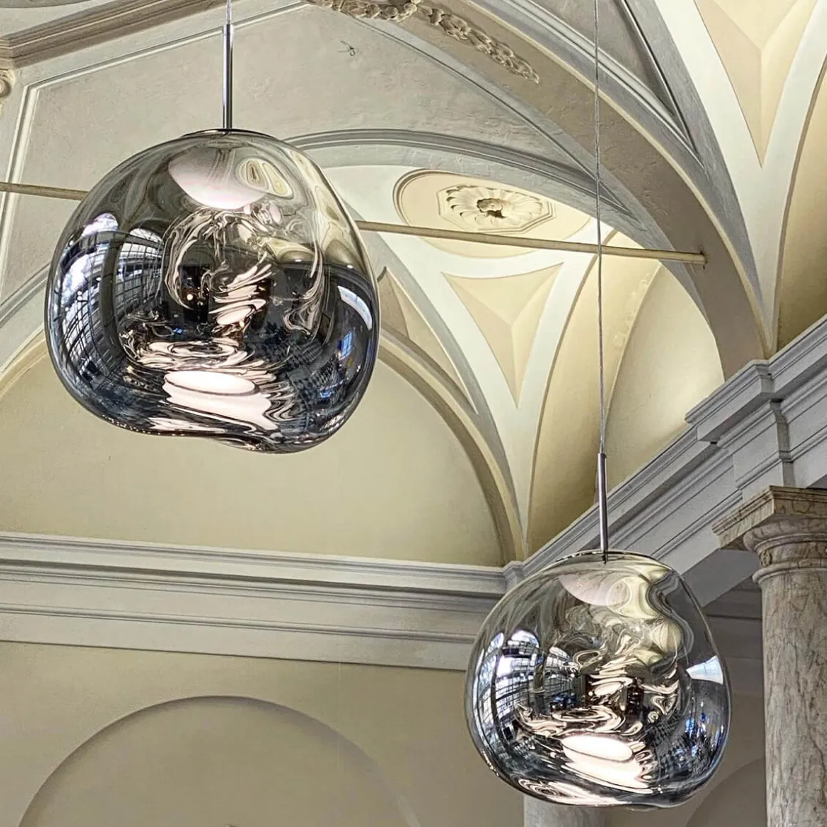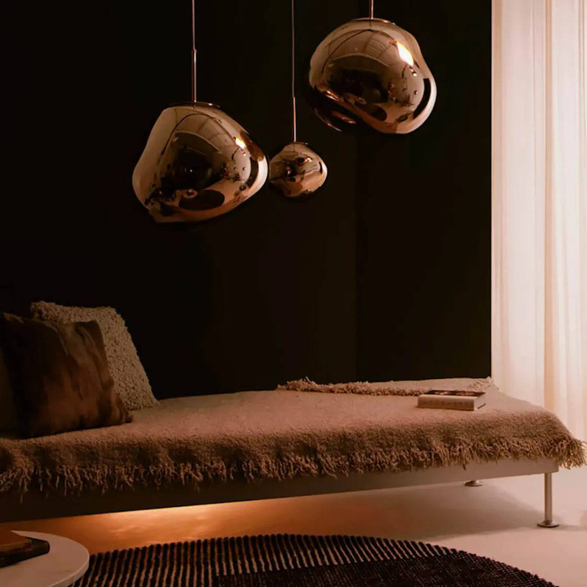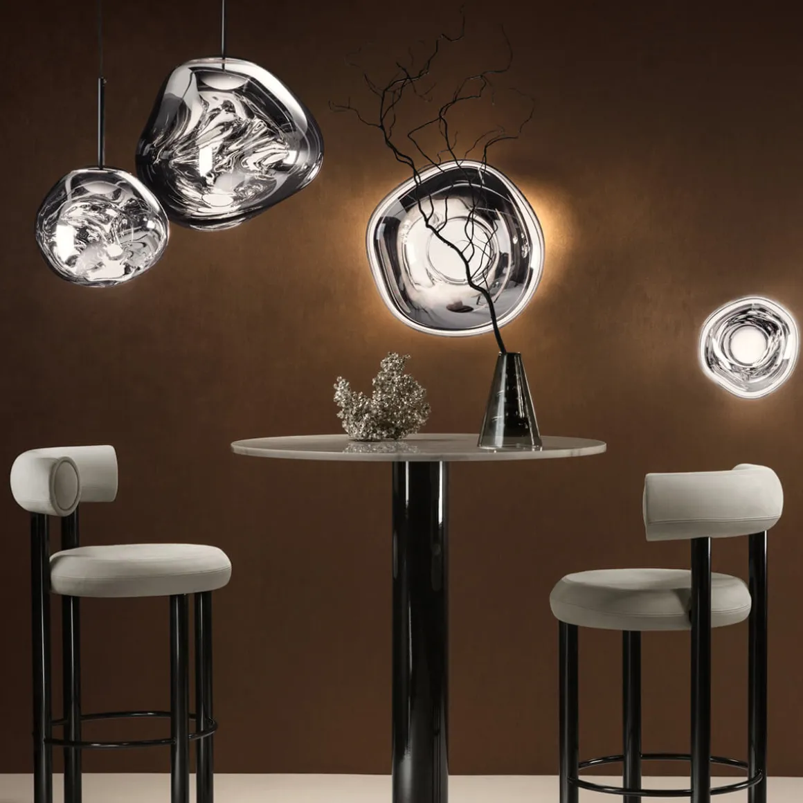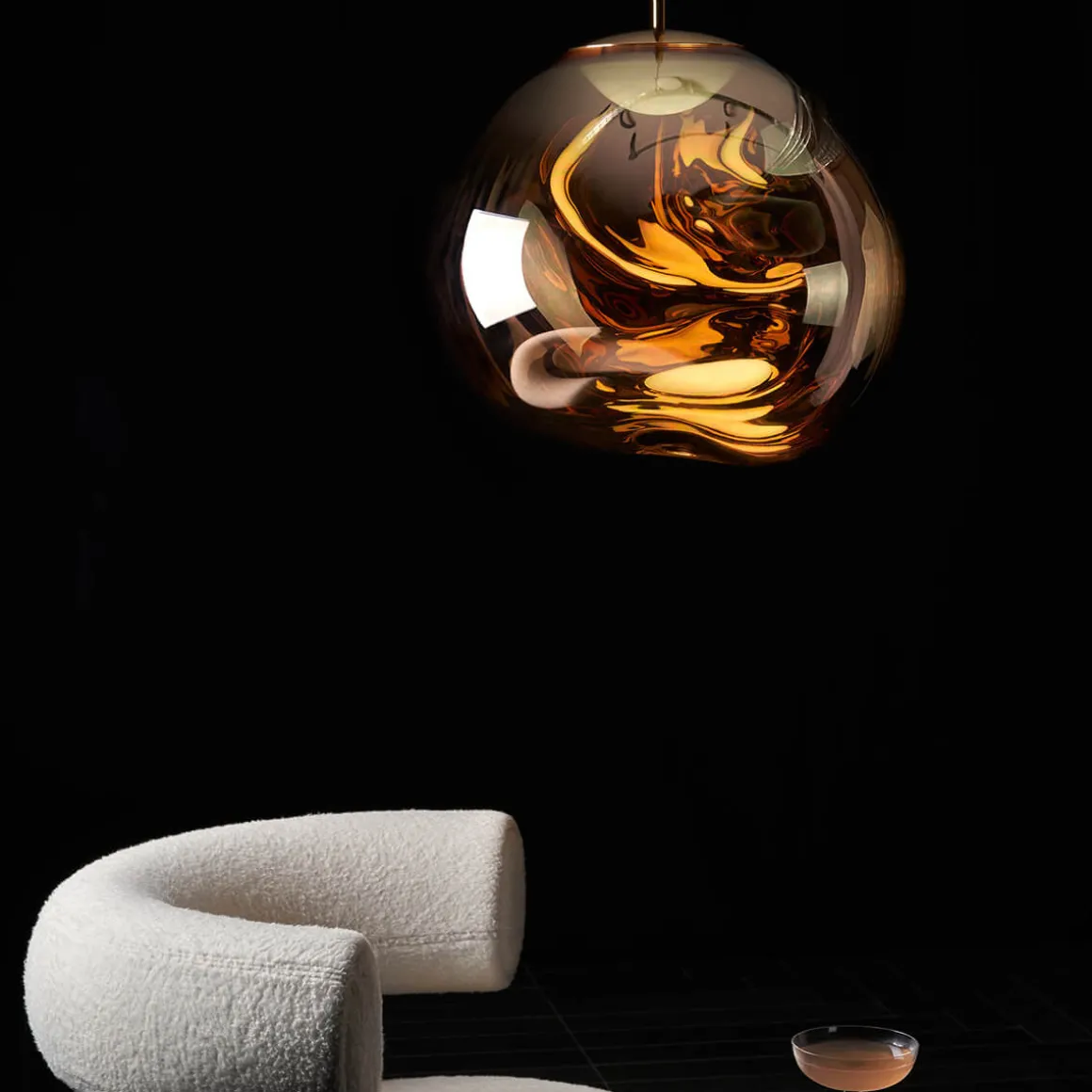 Erhältlich in den edlen Finishes Kupfer, Silber, Gold und Smoke sowie in einer opaleszenten Variante mit silberner oder goldener Aufhängung, passt sich die Tom Dixon Melt mühelos an verschiedene Raumkonzepte an. Ob als einzelner Blickfang über einem Esstisch oder als Teil einer größeren Installation in Lobbys und Foyers – die Melt setzt überall stilvolle Akzente.