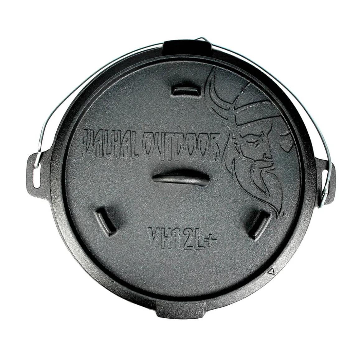 Der Valhal Outdoor Feuertopf 12L verspricht ein genussvolles Kocherlebnis daheim wie auch im Freien. Gusseisen ist für seine hervorragende Wärmeleitfähigkeit bekannt, weshalb der Topf für sämtliche Hitzequellen geeignet ist. Platzieren Sie ihn auf dem Grill, im Ofen oder in der Glut, um ihn zu befeuern. Dank seiner Standfüße kann er unmittelbar auf die Holzkohle oder Briketts gestellt werden, ohne die Hitze zu ersticken. Da der Topf außerdem über einen Henkel verfügt, lässt er sich auch über das offene Feuer hängen.
