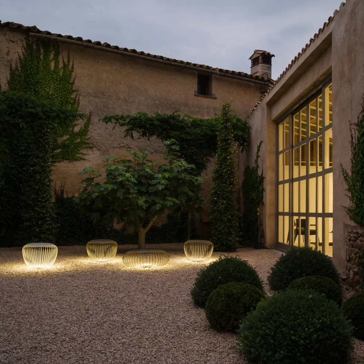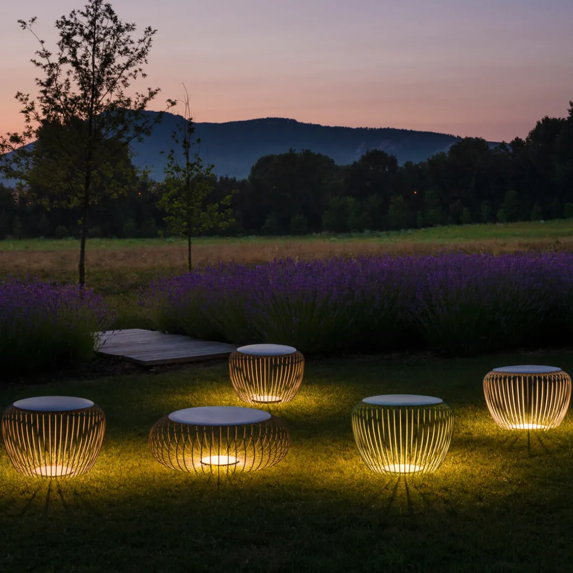 Sitzgelegenheit und dekoratives Lichtobjekt in einem! Die von den spanischen Designern Jordi Vilardell & Meritxell Vidal kreierte Meridiano 4710 besticht durch ihre innovative Gestaltung und die kunstvolle Lichtausstrahlung. Die Außenleuchte besteht aus einem bauchigen Unterbau, der aus einem zarten Gerüst matt lackierter Streben gebildet ist. Die den Unterbau bekrönende Abdeckung birgt die LED-Lichtquelle, die ihr Licht nach unten hin abgibt.