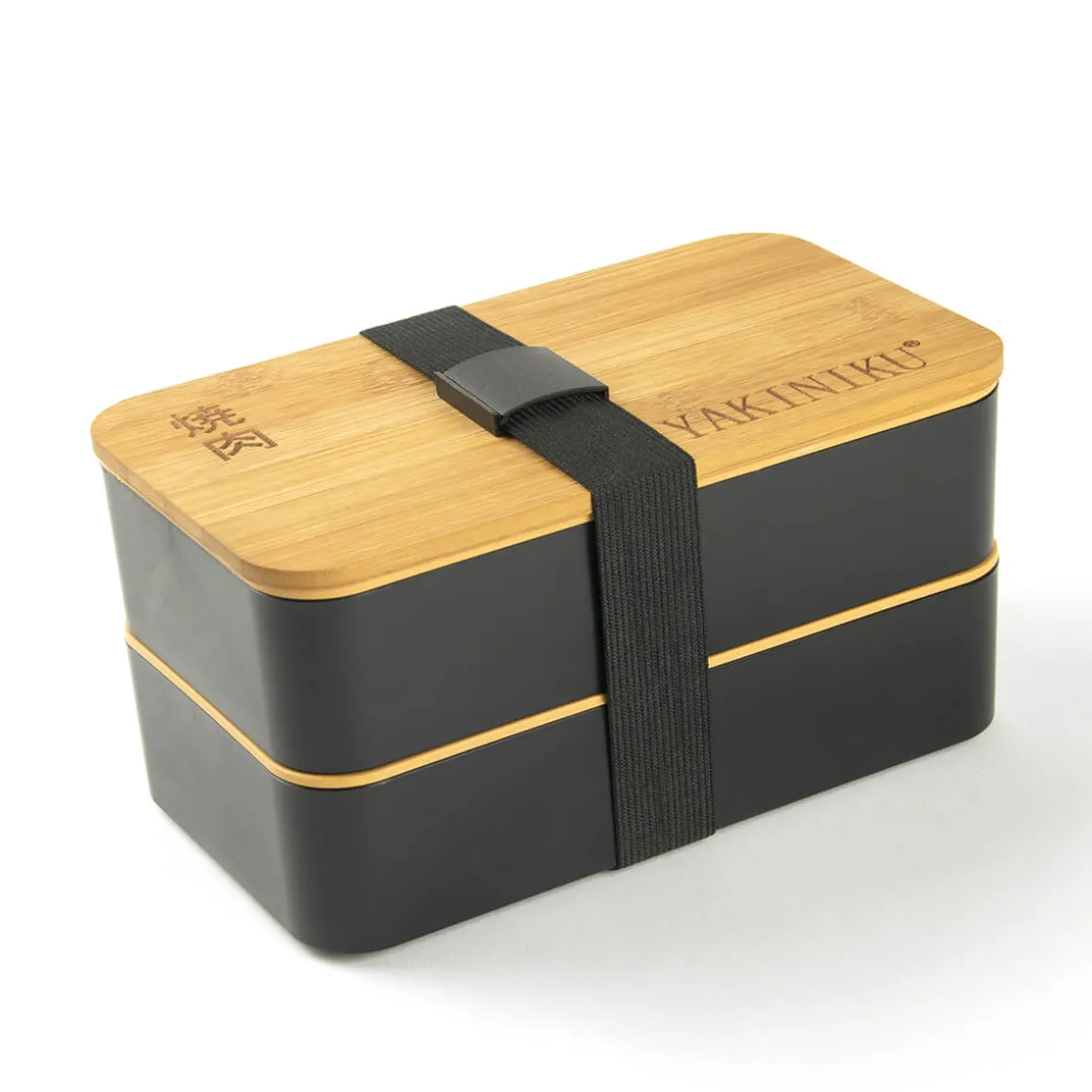 - Mit Bambusdeckel und zwei übereinanderstapelbaren Fächern
