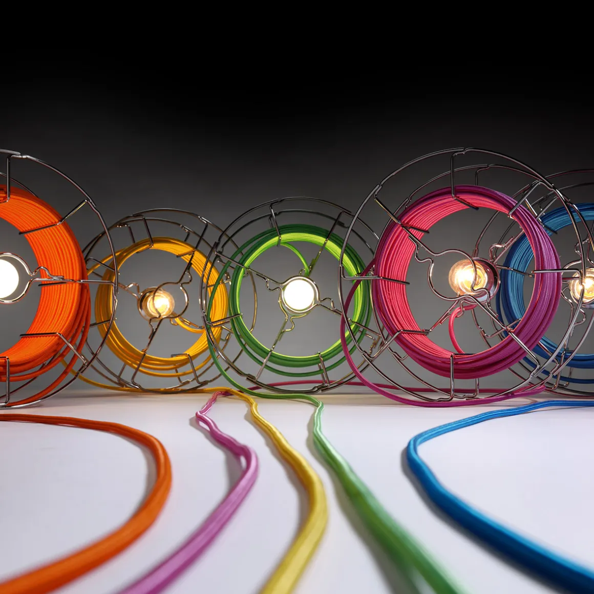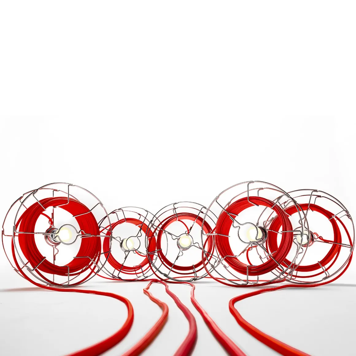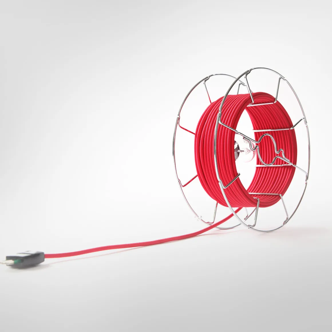 - Verspielte Tischleuchte mit dem Aussehen einer Kabeltrommel